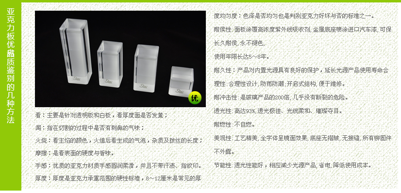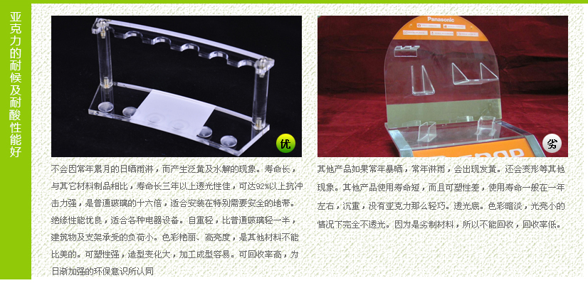 得新老客戶(hù)的一致認(rèn)可和好評(píng),逐步成為國(guó)內(nèi)最有口碑的專(zhuān)業(yè)化公司之一。在當(dāng)今傳媒過(guò)度的世界里,有機(jī)玻璃(亞克力)制品作為一種新穎的廣告及形象載體,因可塑性和藝術(shù)性強(qiáng),給人一種獨(dú)特的視覺(jué)感官效果